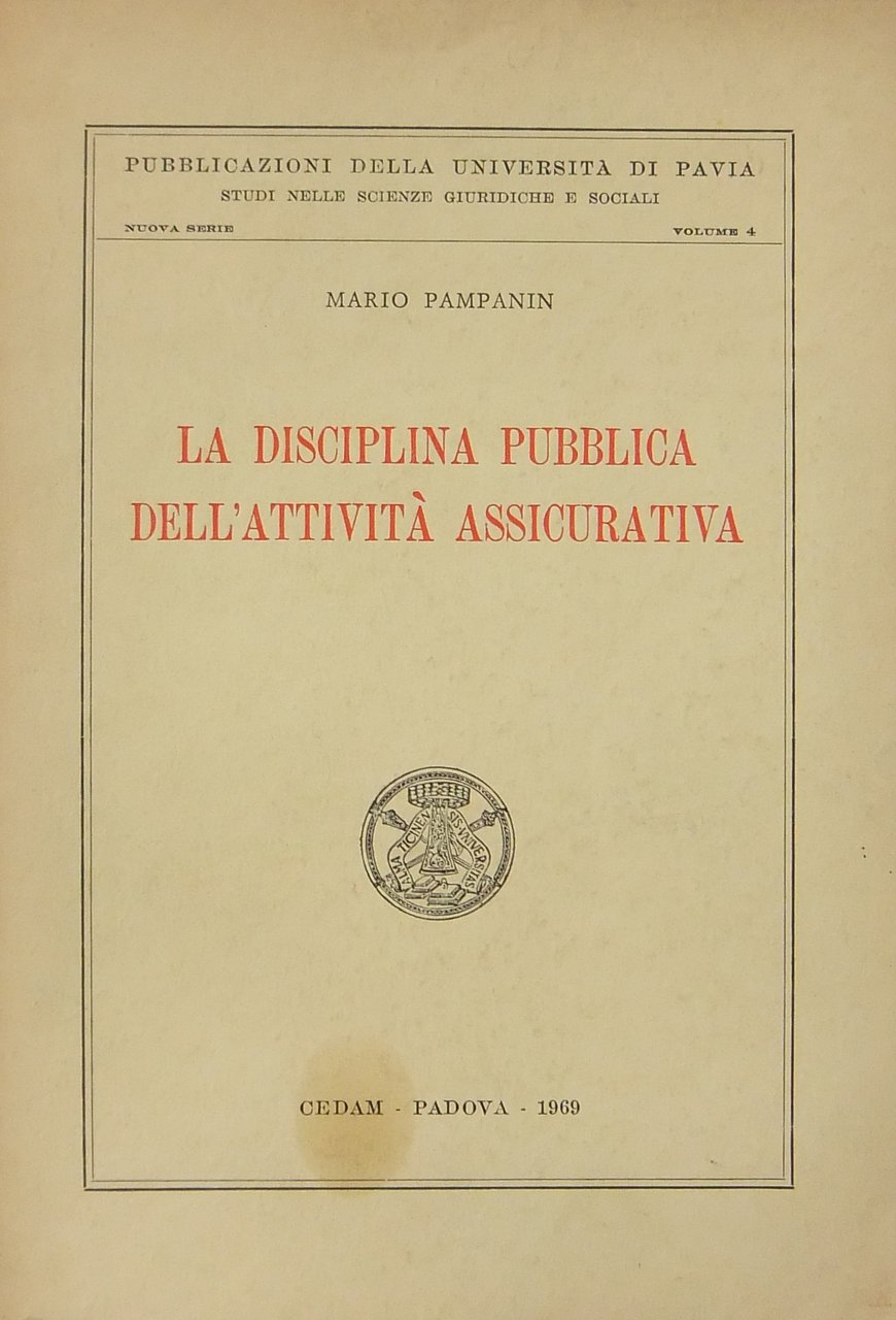 La disciplina pubblica dell'attività assicurativa. Tutela e promozione nell'intervento pubblico sull'economia | Libros antiguos y modernos | Pampanin Mario