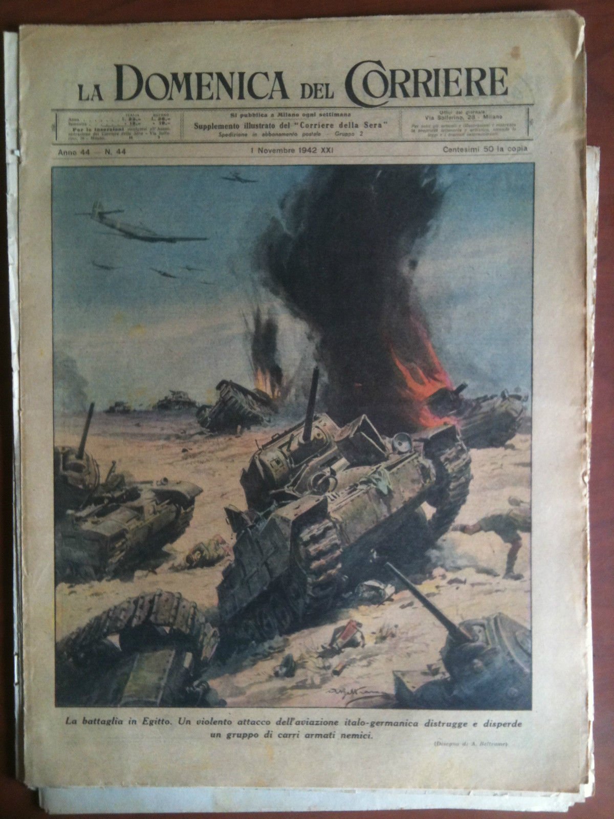 La Domenica del CorriereAll'interno disegni di A. Beltrame Egitto attacco dell'aviazione italo-germanica disperde i nemiciW. MolinoItaliani residenti in Inghilterra tentano di rientrare in Italia per arruolarsi con un piccolo battelloIn buono stato piccolissimi danni ai bordi (25 g)E8560