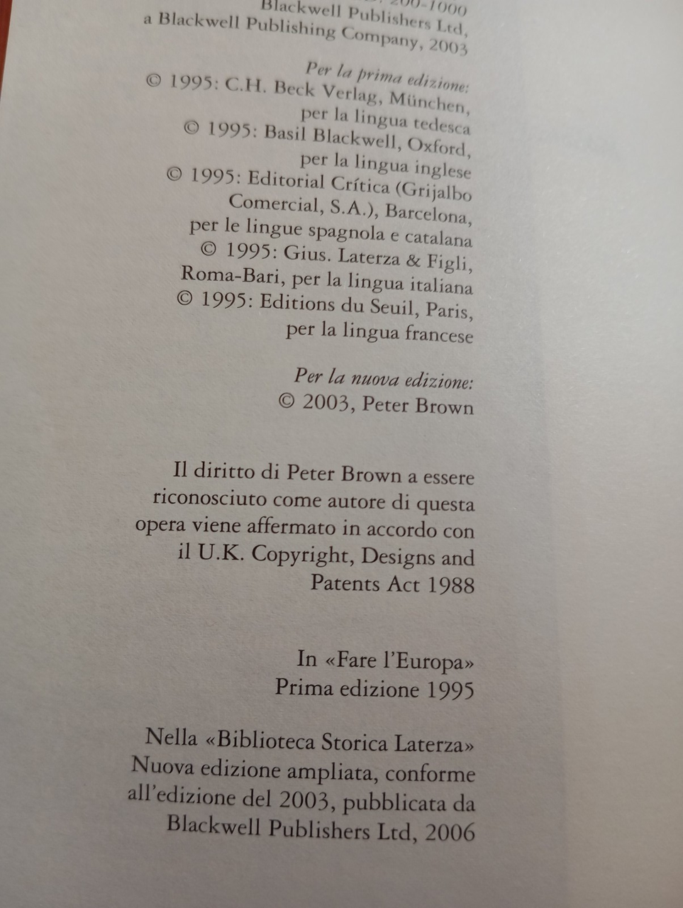 La formazione dell'Europa cristiana, Peter Brown, Laterza, 2006