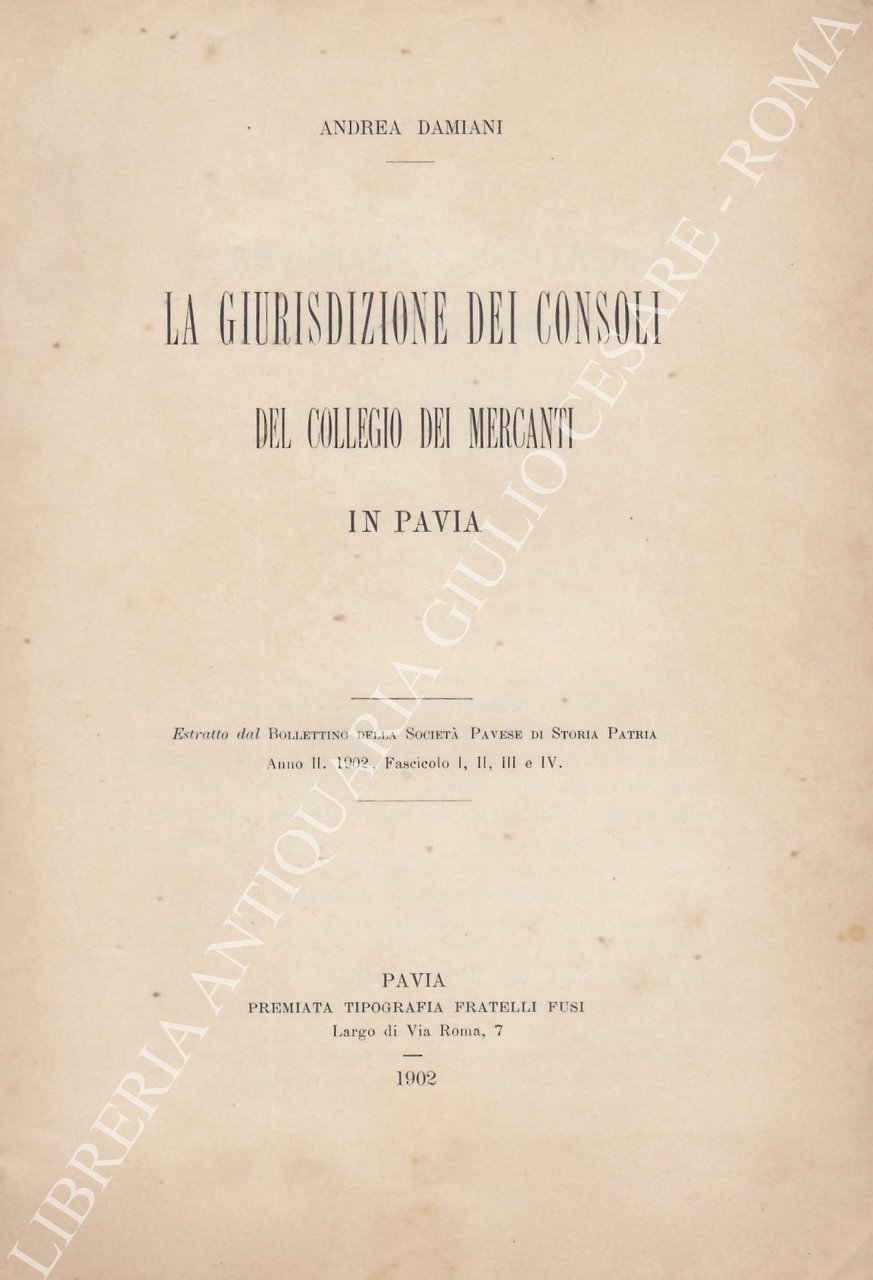 La giurisdizione dei consoli del Collegio dei Mercanti in Pavia | Libros antiguos y modernos | Damiani Andrea