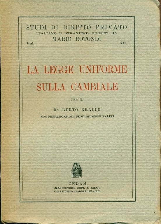 La legge uniforme sulla cambiale | Libros antiguos y modernos | BRACCO Berto,