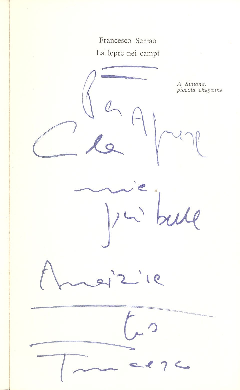 Significativa dedica e firma autografe di F. Serrao su estratto de La lepre nei campi, Quaderni della Fenice, Guanda 1978 . 16mo. pp. 24. . Molto buono (Very Good). . . .