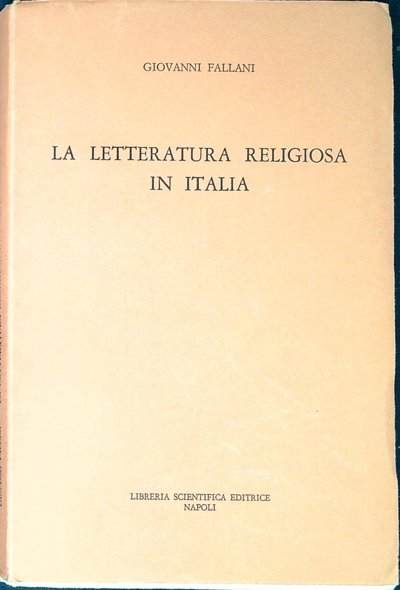 Fallani; Giovanni La letteratura religiosa in Italia. Napoli, Libreria scientifica 1973, 20 229 p. 229 p. 20 cm (56773)