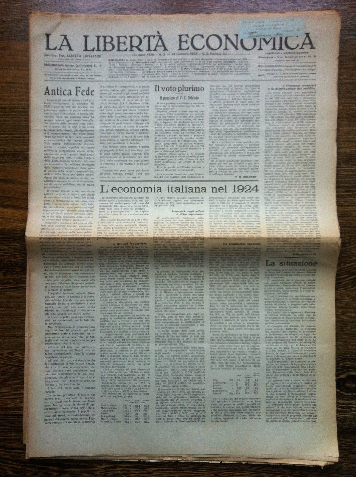 LA LIBERTA' ECONOMICADirettore Prof. Alberto GiovanniniCopia indirizzata in abbonamento al Sig. Prof. Luigi Einaudi Torino Senatore del RegnoIn buono stato (25 g)E11336