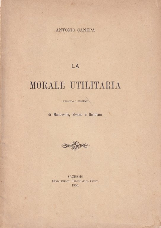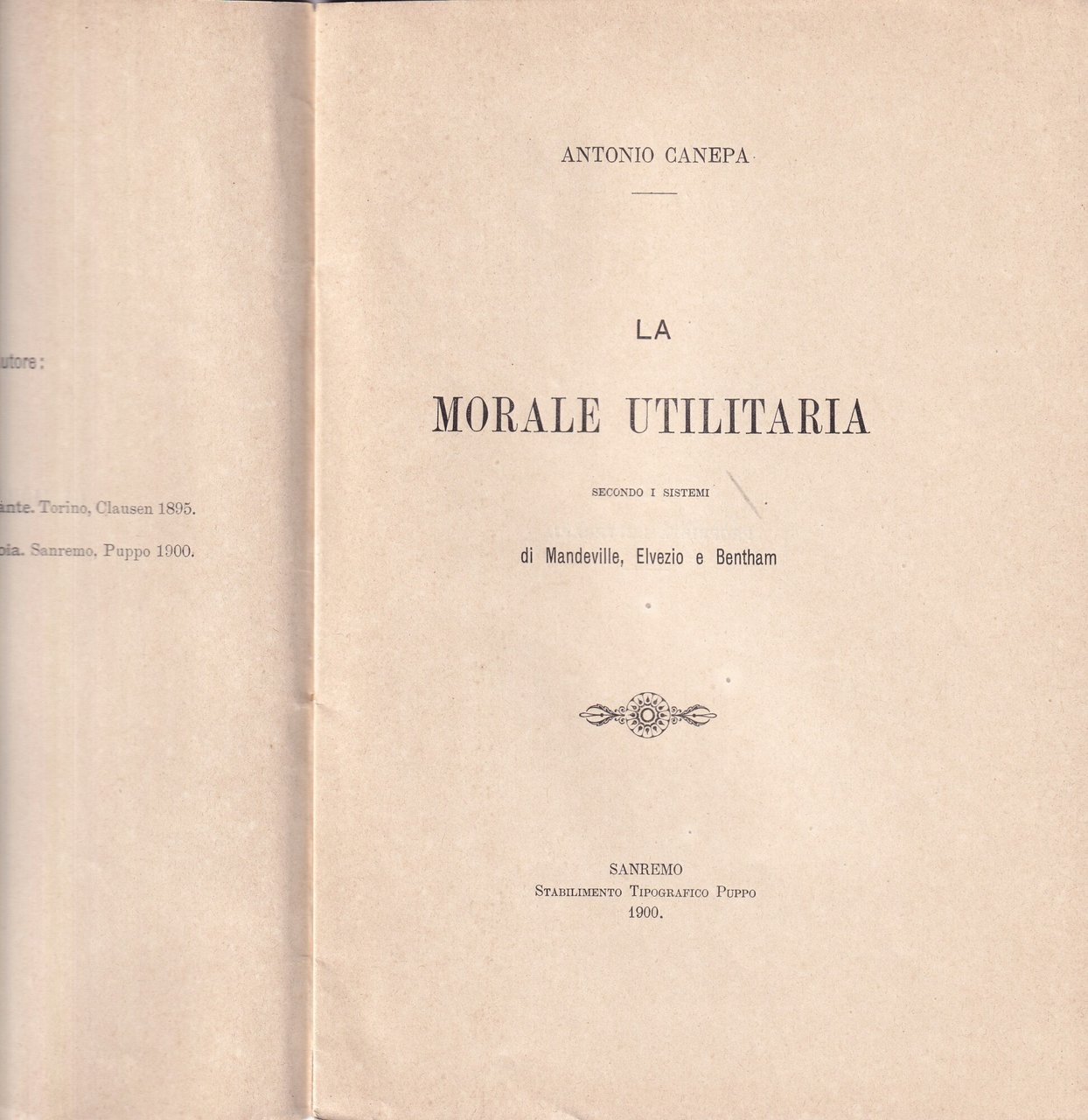 La Morale Utilitaria secondo i sistemi di Mendeville, Elvezio e Bentham | Libros antiguos y modernos | Canepa, Antonio