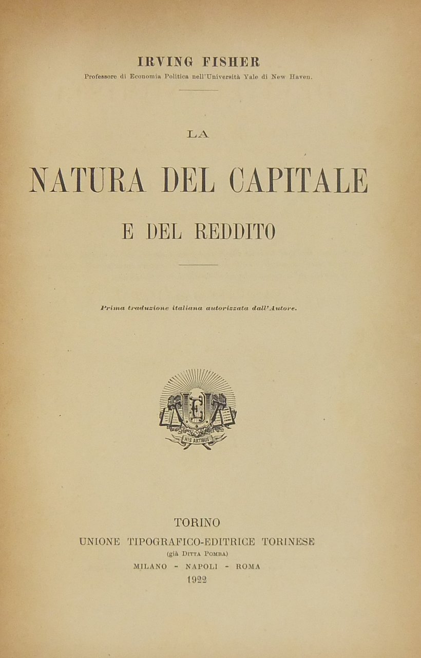 La natura del capitale e del reddito. Prima traduzione italiana autorizzata dall'autore | Libros antiguos y modernos | Fisher Irving
