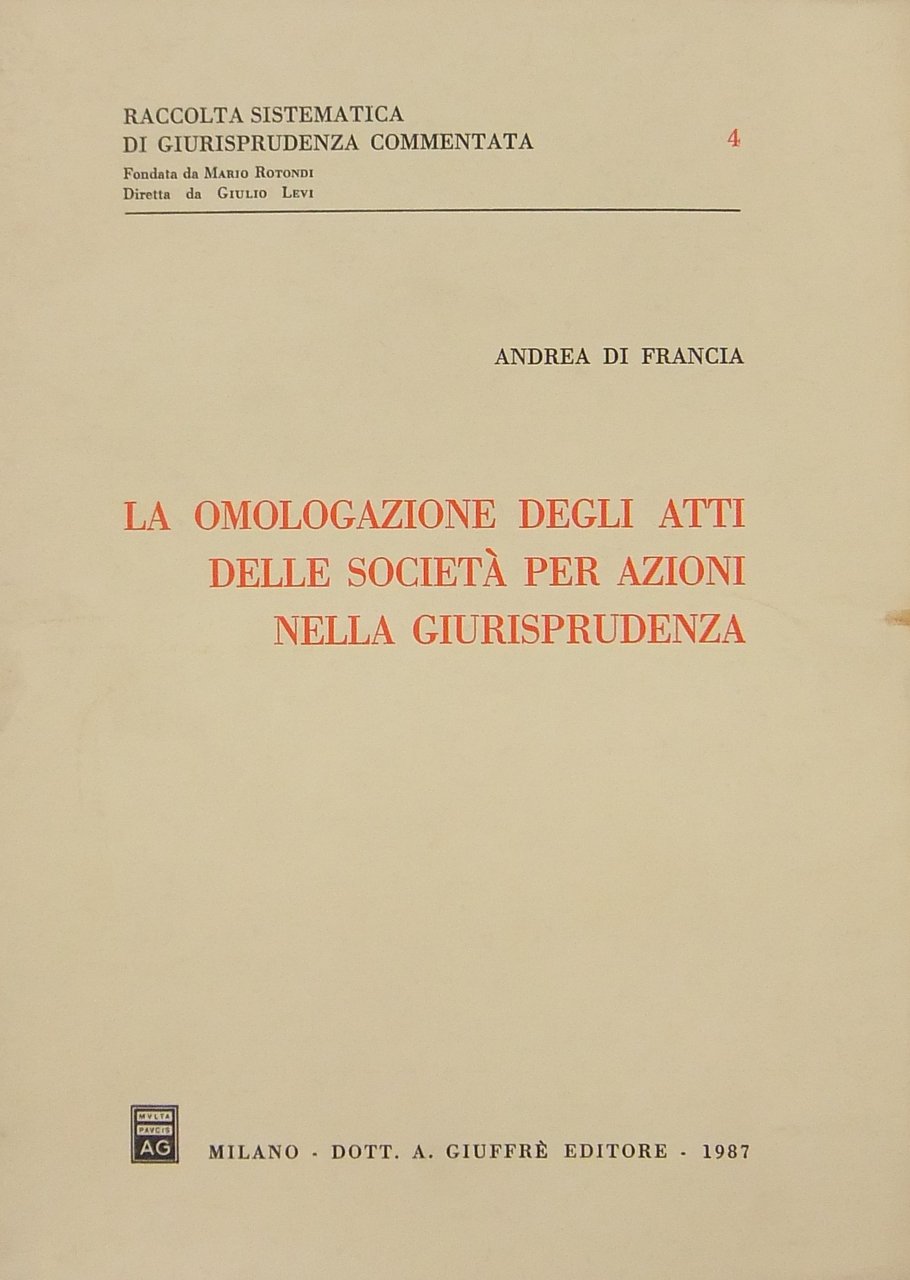 La omologazione degli atti delle società per azioni nella giurisprudenza | Libros antiguos y modernos | Di Francia Andrea