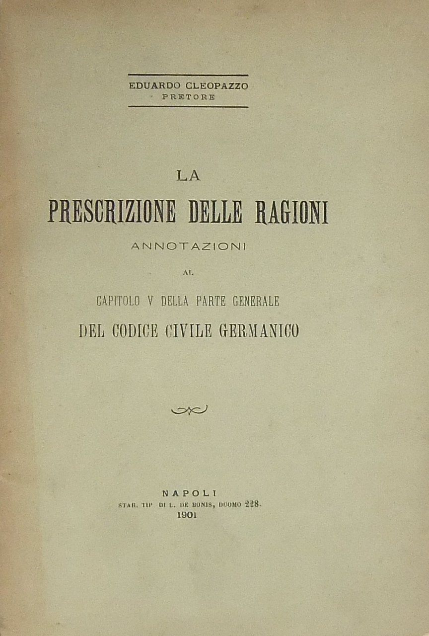 La prescrizione delle ragioni. Annotazioni al capitolo V della parte generale del Codice Civile Germanico | Libros antiguos y modernos | Cleopazzo Eduardo