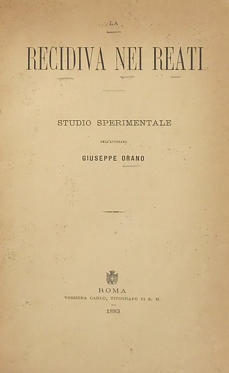 La recidiva nei reati. Studio sperimentale | Libros antiguos y modernos | Orano Giuseppe