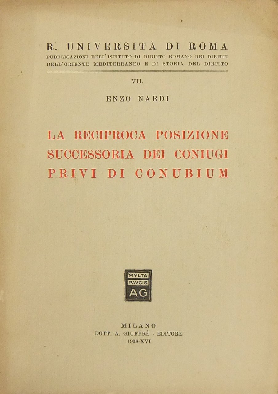 La reciproca posizione successoria dei coniugi privi di conubium | Libros antiguos y modernos | Nardi Enzo