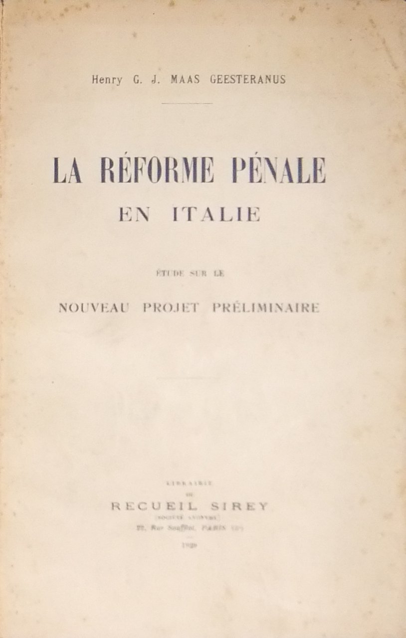 La Reforme penale en Italie. Etude sur le nouveau projet préliminaire | Libros antiguos y modernos | Maas Geesteranus Henry G. J.