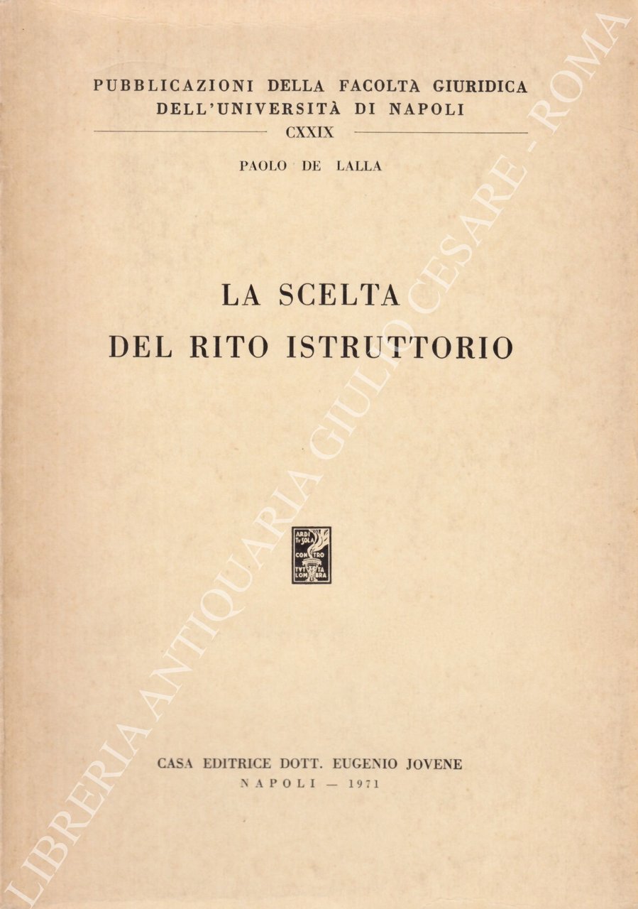 La scelta del rito istruttorio | Libros antiguos y modernos | De Lalla Paolo
