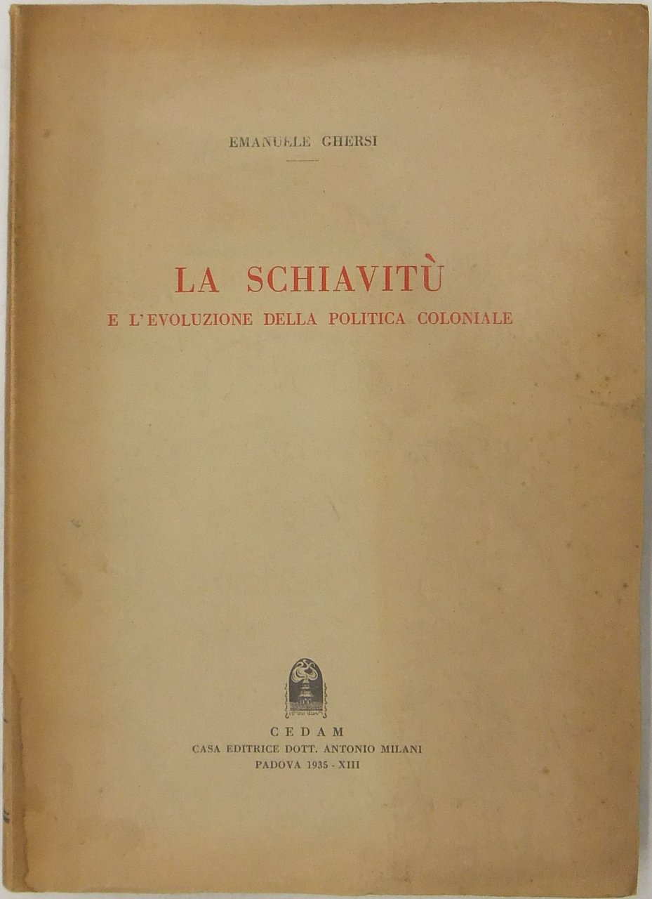 La schiavitù e l'evoluzione della politica coloniale | Libros antiguos y modernos | Ghersi Emanuele