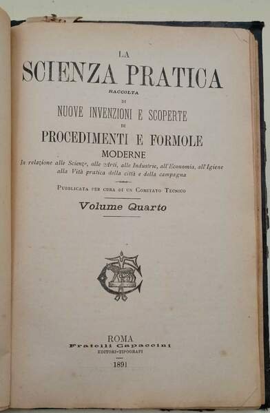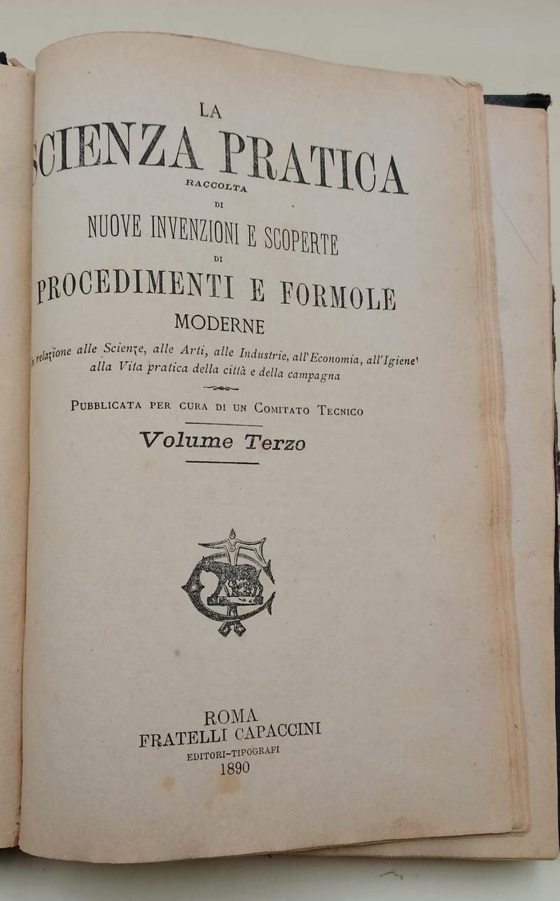 LA SCIENZA PRATICA RACCOLTA DI NUOVE INVENZIONI E SCOPERTE DI PROCEDIMENTI E FORMOLE MODERNE-VOLL I, III E IV (1888)