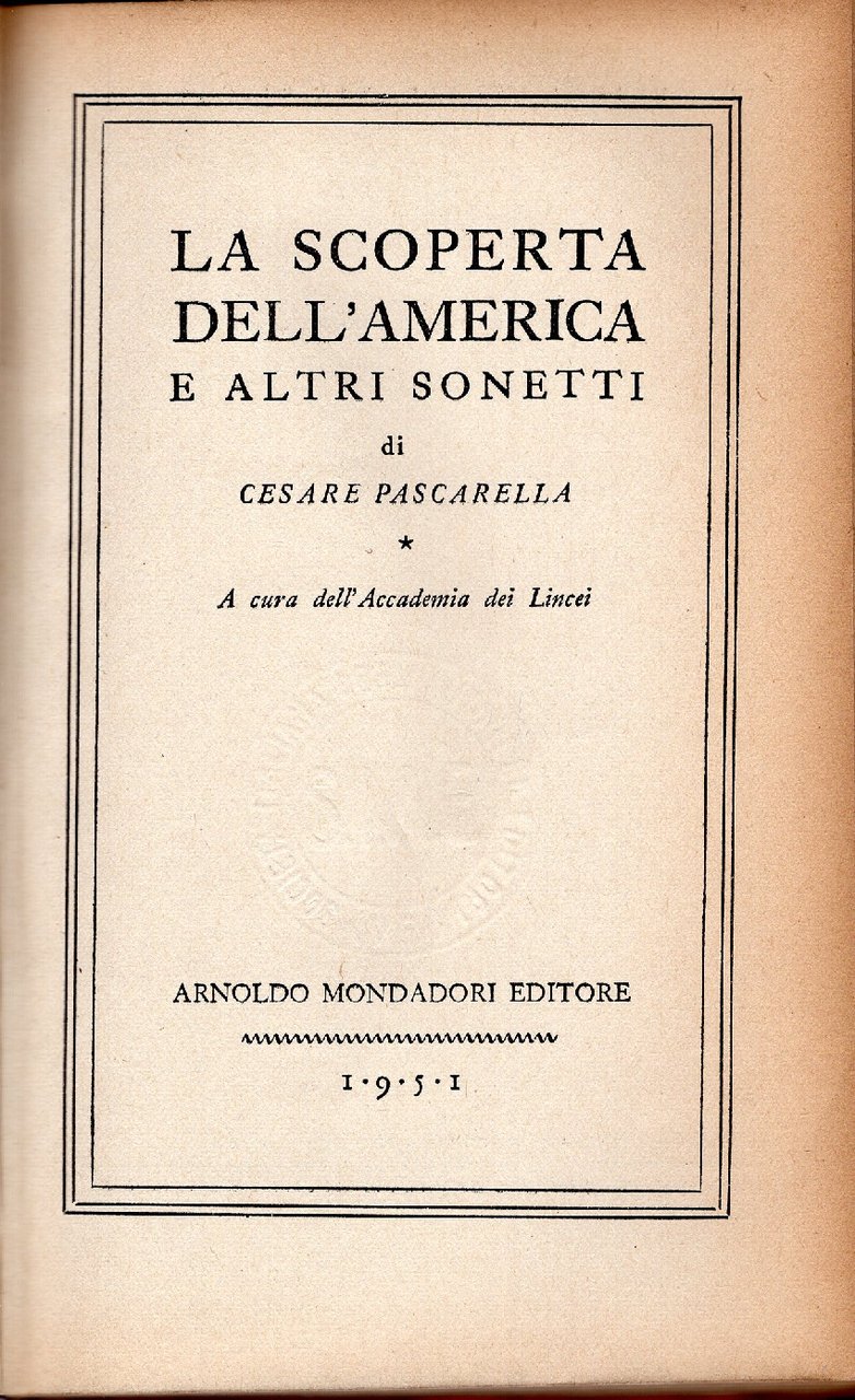 La scoperta de l'America e altri sonetti.