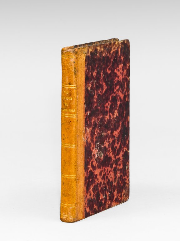 Deuxième édition, 1 vol. in-12 reliure XIXe postérieure demi-basane marron, Chez l'Auteur, De l'Imprimerie de Delance, A Paris, An V (1797 v. st.), frontispice, 1 f., 244 pp. et 2 f. n. ch. A propos de cette édition, Tourneux, précise : "En regard du titre, portrait anonyme de Robespierre. L'auteur dit dans un "Nota" : "On m'a observé avec raison que le nouveau titre que je donne à cette brochure lui convient beaucoup mieux que celui que j'avais adopté. Tel est le motif qui m'a fait changer le premier titre. Au reste, je préviens que cette deuxième édition est entièrement conforme à la première" (Tourneux, 25033). Etat très satisfaisant (mouill. en tête sur l'intégralité de l'ouvrage, serpente arrachée, bon état par ailleurs).