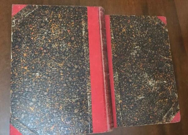 Legatura artigianale. Copertina in ecopelle marmorizzata con bande e angoli sporca e usurata. Tagli sporchi di polvere e bruniti. Pagine ingiallite, frontespizio usurato. Mediocre (Poor) .