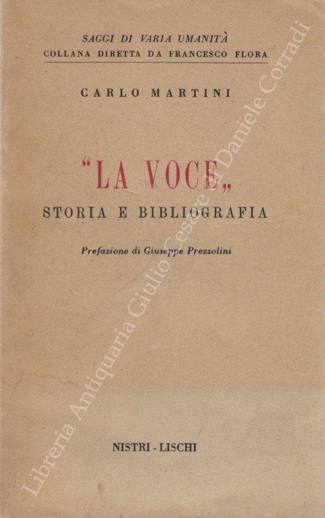 "La voce" Storia e bibliografia. Prefazione di Giuseppe Prezzolini | Libros antiguos y modernos | Martini Carlo