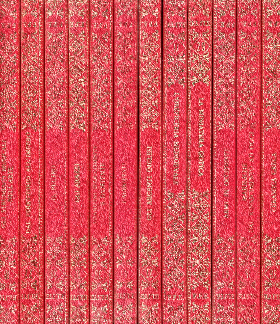 Collana completa di n. 60 volumi, con illustrazioni a colori. Il Luigi XV - La pittura cinese - Le porcellane europee - Antiche giade - Lo smalto in Europa - Arte dell'Oceania - Gli avori in occidente - Tappeti d'oriente - Terrecotte precolombiane - Il Luigi XVI - Maschere africane - Gli arazzi - La Pop art - Bronzi cinesei - Maioliche dal Rinascimento ad oggi - Gli strumenti musicali nell'arte - L'oreficeria medioevale - Il tessuto nell'arte antica - La miniatura indiana - Dai Nuraghi agli etruschi, la scultura minore nell'Italia preromana - Gli argenti inglesi - Dal Direttorio all'Impero - I bronzetti del Rinascimento - Il ferro battuto - L'oreficeria nell'arte classica - Tappeti d'occidente - La decorazione rinascimentale - Ville antiche - La miniatura gotica - Il Rococò - L'arte del vetro dall'antichità al Rinascimento - Giardini d'occidente e d'oriente - Lacche orientali - Maioliche dell'Islam e del Medioevo occidentale - Ceramica greca - Gli orologi - La miniatura rinascimentale - Il peltro - I manifesti - L'arte del vetro dal Rinascimento ai giorni nostri - Ville moderne - Armi in occidente - Oreficieria dal Rinascimento al Liberty - La decorazione nell'età barocca - Lo stile1925 - Gli ebanisti del Luigi XV - Ceramiche e porcellane cinesi - L'arredamento spagnolo - Gli argenti italiani - Arredamento moderno - Gli ebanisti del Luigi XVI - Scultura lignea nel mondo latino -Miniatura romanica - Armi in oriente - Scenografia italiana dal Rinascimento all'età romantica - Scultura lignea nel mondo nordico - Il Luigi XIV - Gli ebanisti del XIX secolo - Metalli islamici . 16mo. pp. 158 ogni volume. . Ottimo (Fine). . . .