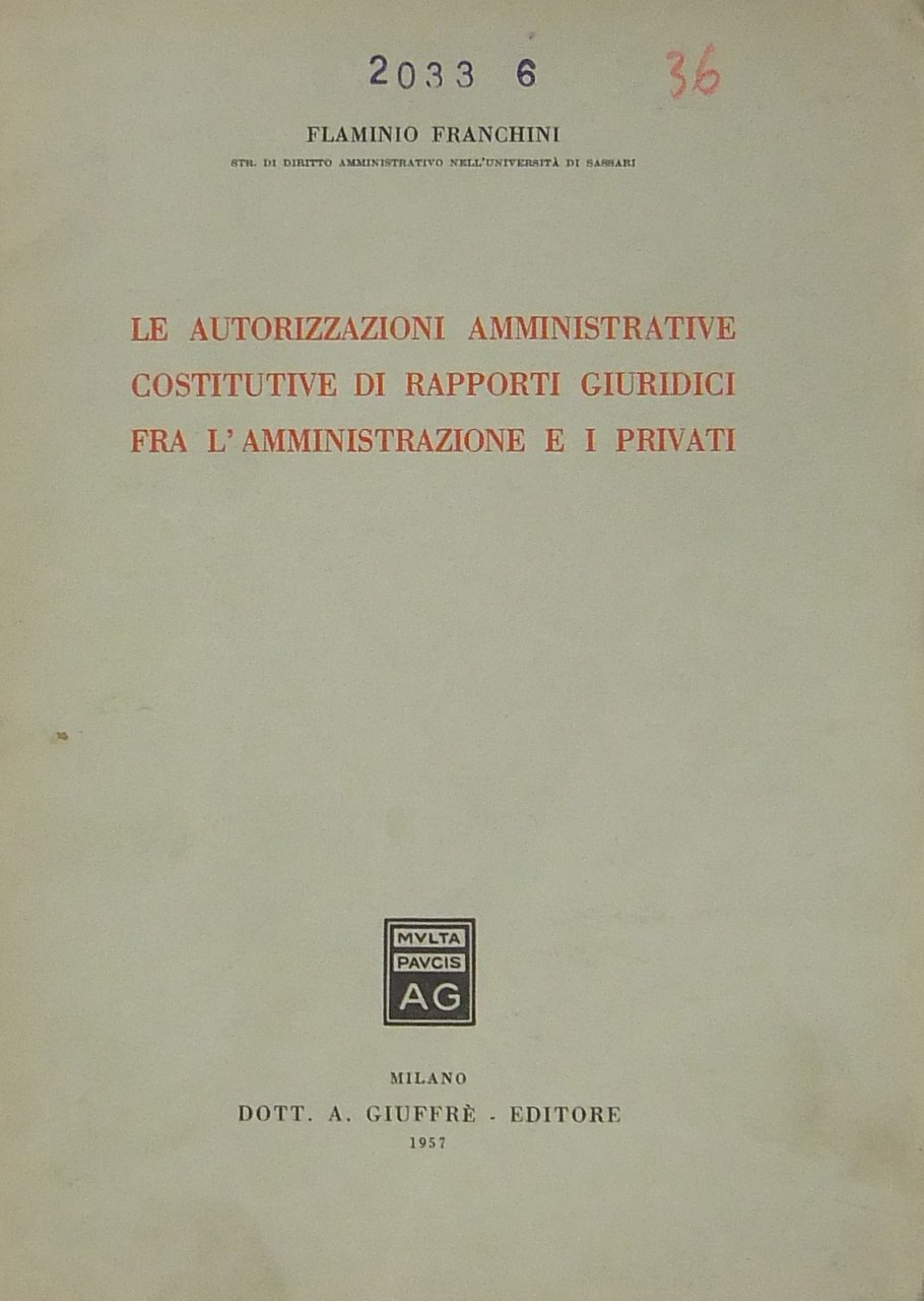 Le autorizzazioni amministrative costitutive di rapporti giuridici fra l'amministrazione e i privati | Libros antiguos y modernos | Franchini Flaminio