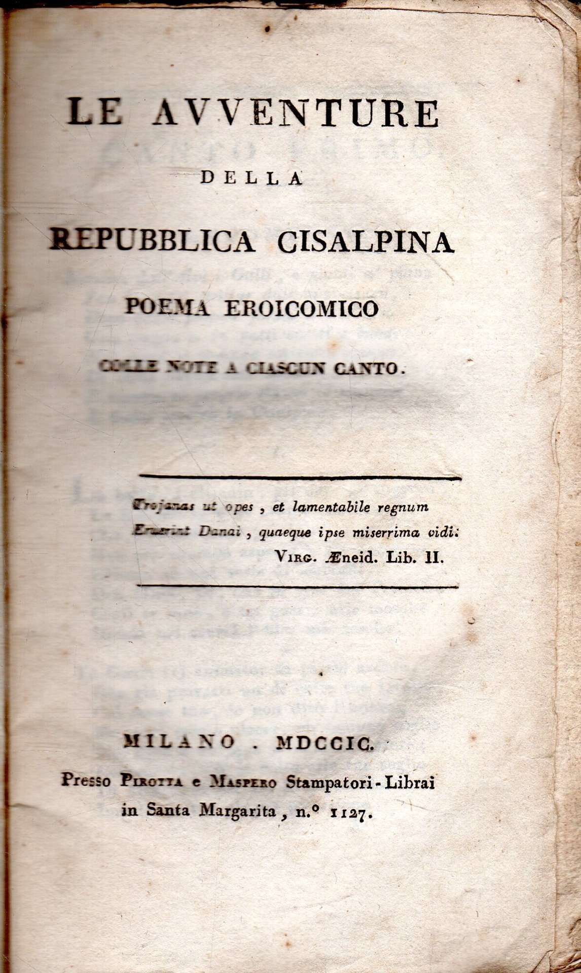 Le avventure della Repubblica Cisalpina. Poema Eroicomico (PRIMA EDIZIONE)