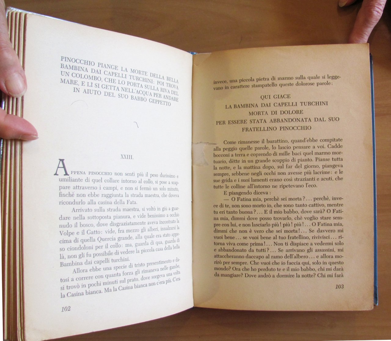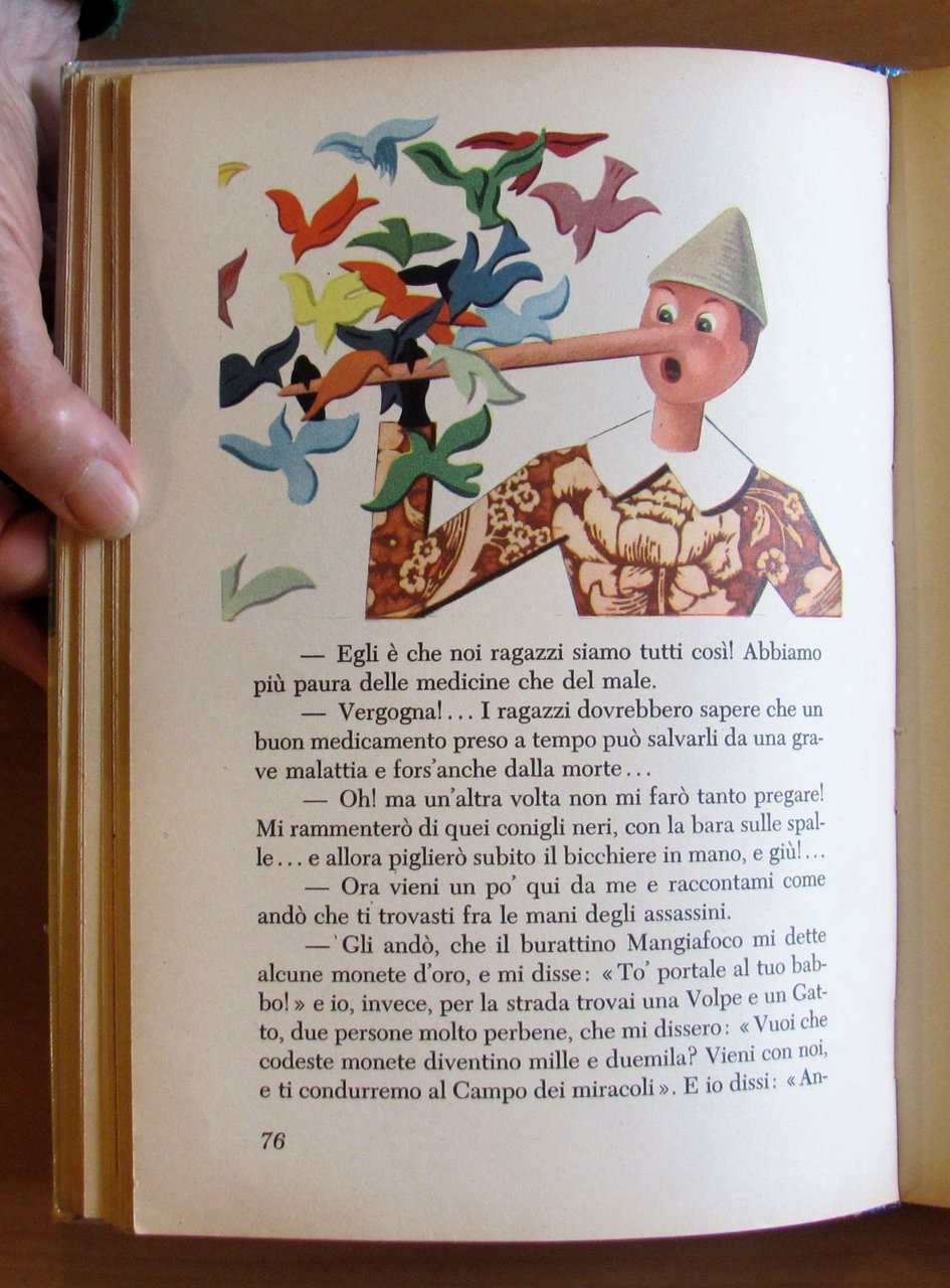 Storia di un Burattino - Collana Girasole. Illustrazione a due colori n.t. e molte belle tavole a colori a piena pagina di Furlan. Editrice Aristea - Milano, s.d. anni '60. Testo Integrale. Brossura editoriale con lievi imperfezioni del tempo al dorso, un taglietto restaurato al frontespizio, una piccola mancanza ad una pagina, due segnetti a penna e qualche piccola imperfezione marginale in poche pagine. Libro comunque molto fresco, pulito e perfettamente legato. 17x24,5; pp.208. Buonissimo stato. , Molto buono (Very Good)