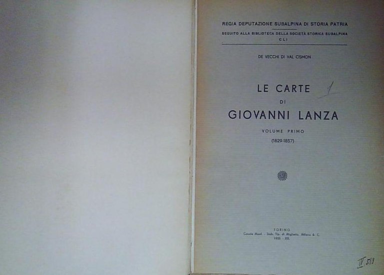 LE CARTE DI GIOVANNI LANZA VOLUME PRIMO