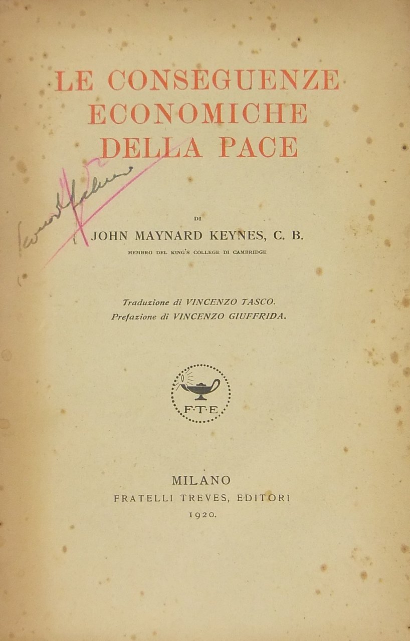 Le conseguenze economiche della pace. Traduzione di Vincenzo Tasco. Prefazione di Vincenzo Giuffrida