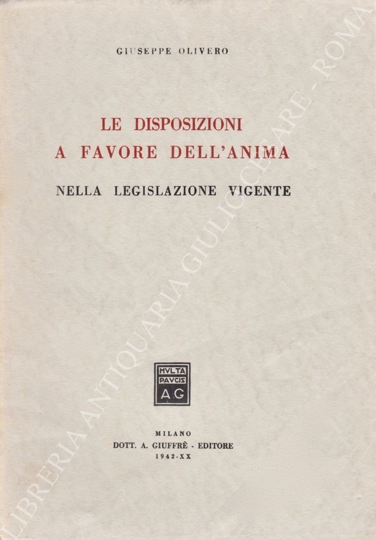 Le disposizioni a favore dell'anima nella legislazione vigente | Libros antiguos y modernos | Olivero Giuseppe