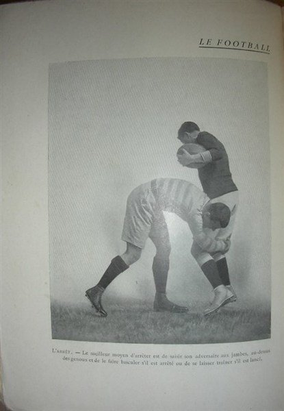 in-8, pp. 378, (4), leg. mod. cartone con tass. al d. Con decine di incis. n.t. e tavv. raff. momenti del gioco, squadre, schemi, etc. Interess. saggio sul rugby. [046]