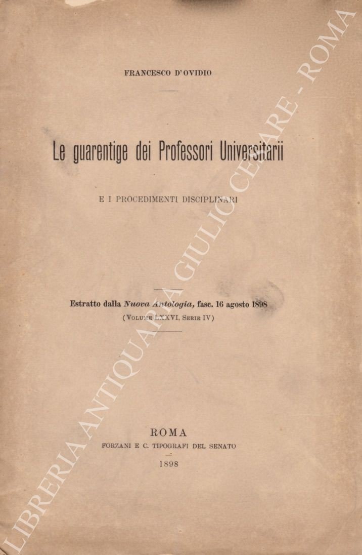 Le guarentige dei Professori Universitari e i procedimenti disciplinari | Libros antiguos y modernos | D'Ovidio Francesco (1849-1925)