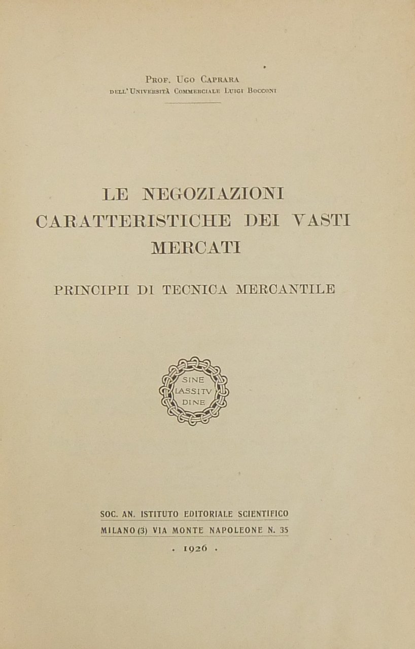 Le negoziazioni caratteristiche dei vasti mercati. Principii di tecnica mercantile | Libros antiguos y modernos | Caprara Ugo