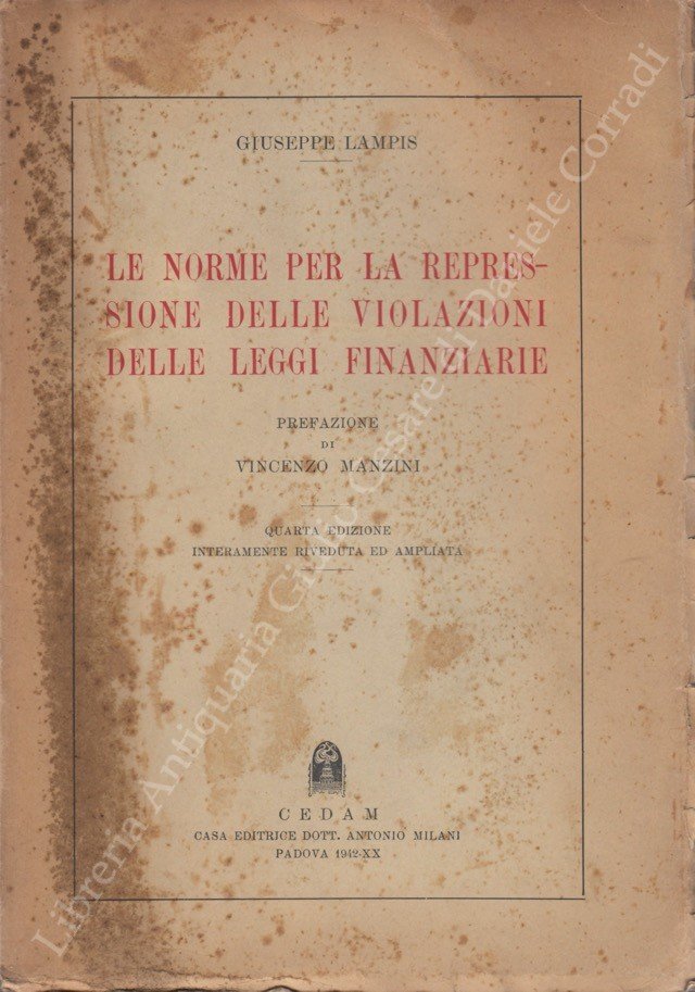Le norme per la repressione delle violazioni delle leggi finanziarie. Prefazione di Vincenzo Manzini | Libros antiguos y modernos | Lampis Giuseppe