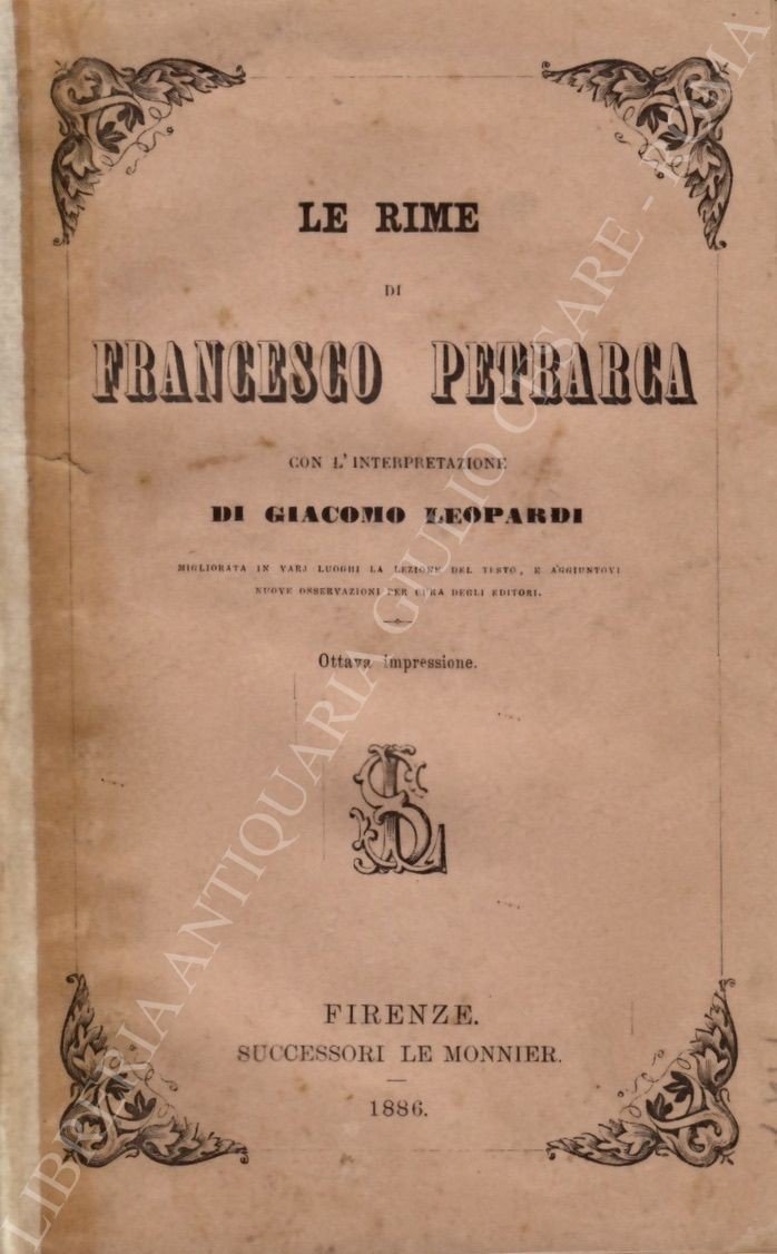 Le Rime. Con l'interpretazione di Giacomo Leopardi migliorata in varj luoghi la lezione del testo, e aggiuntovi nuove osservazioni per cura degli Editori