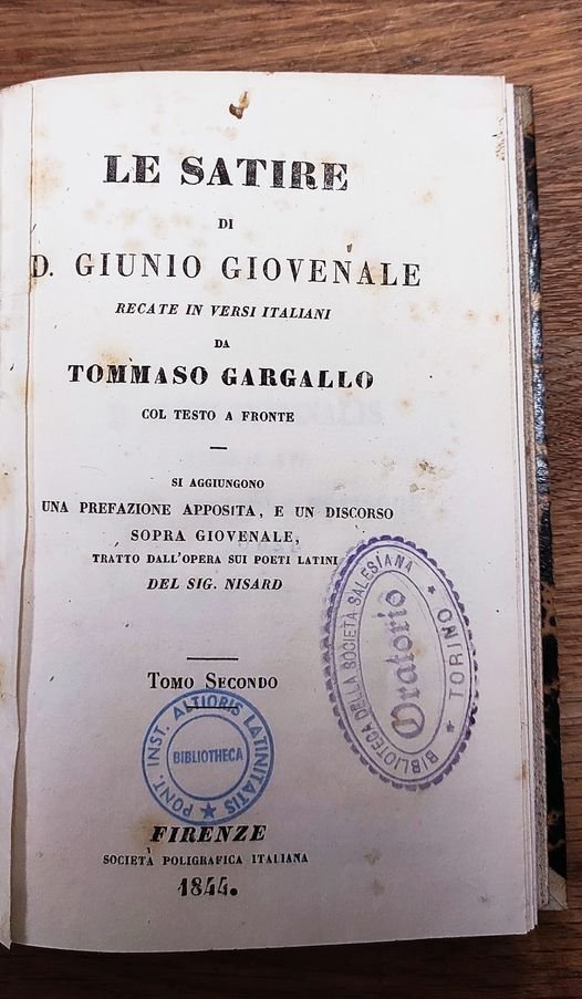 Le satire di D. Giunio Giovenale, recate in versi italiani da Tommaso Gargallo ; si aggiungono una prefazione apposita, e un discorso sopra Giovenale tratto dall'opera sui poeti latini del sig. Nisard. 2 volumi