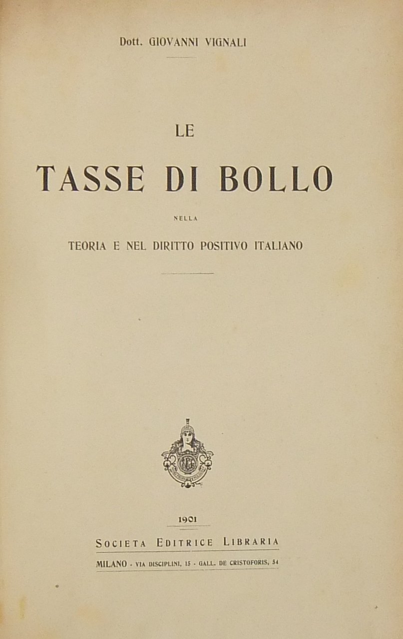 Le tasse di bollo nella teoria e nel diritto positivo italiano | Libros antiguos y modernos | Vignali Giovanni