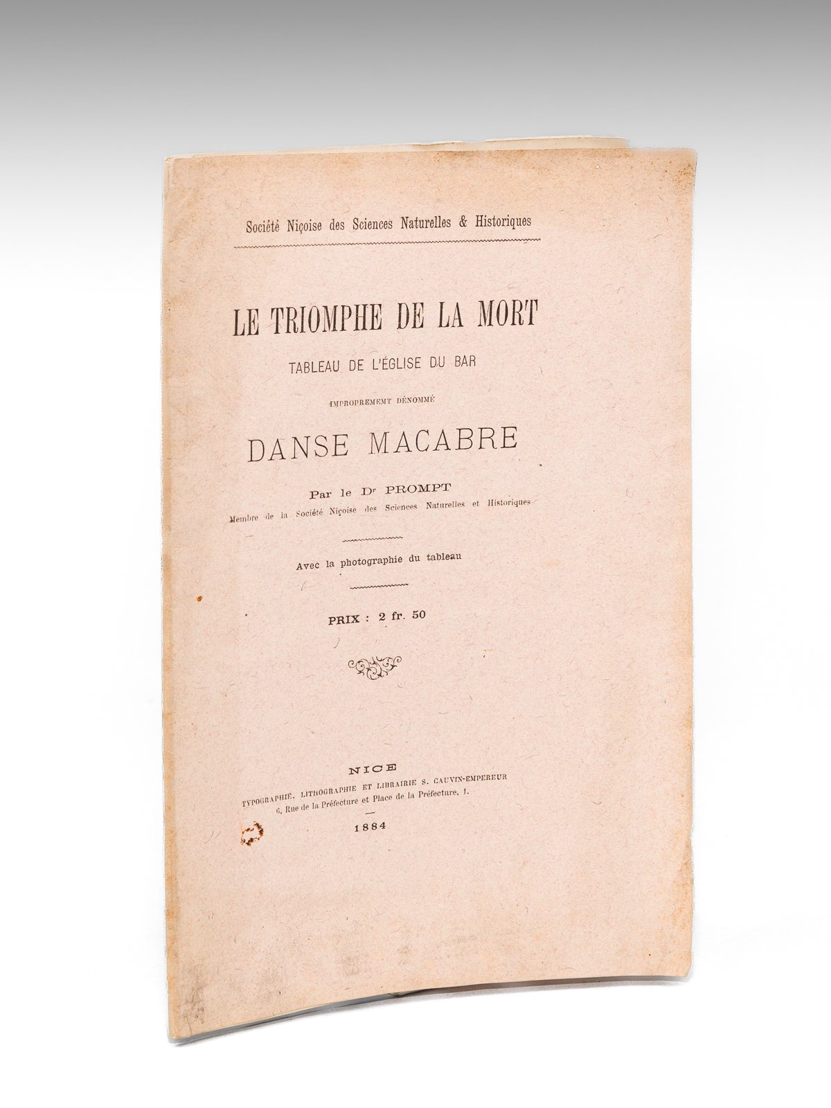 Avec la photographie du Tableau, 1 brochure in-8, Typographie, Lithographie et Librairie S. Cauvin-Empereur, Nice, 1884, 26 pp. et 2 ff. n. ch. avec 2 photos collées Très rare exemplaire de cette brochure illustrée de deux photos d'époque contrecollées sur les deux derniers feuillets. Bon état (couv. lég. frottée)