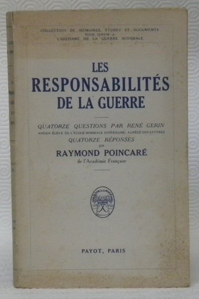 Les responsabilités de la guerre. 14 questions pour René Guérin. 14 réponses de Poincaré. Collection de mémoires, études et documents pour servir à l’histoire de la guerre mondiale. | Libros antiguos y modernos | Poincare, Raymond.