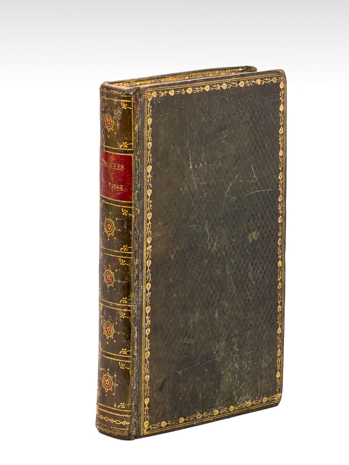 Précédées de Mémoires Historiques et de Recherches littéraires sur sa vie, traduites par M. B. Barère, Edition ornée de quatre gravures, 1 vol. in-12 reliure de l'époque plein maroquin vert, dos lisse orné mosaïqué, dentelle d'encadrement en plats, coupes et chasses ornées, toutes tranches dorées, plats estampés à froid d'un décor à résille façon cuir de russie, De l'Imprimerie de Crapelet, An XIII, 1804, Paris, XCIV-231 pp. avec 4 planches hors texte Charmante et curieuse reliure d'époque, au dos mosaïqué. Bon état (petites usures et frott. à la reliure, qq. rouss., bon exemplaire par ailleurs).