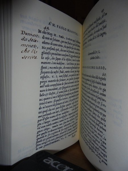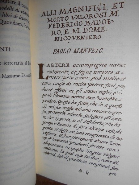 Paolo, Manunzio. Bologna, University Press, 2005. Lettere volgari di diversi eccellentissimi huomini. 2 volumi legati assieme, in-24° gr. piena pelle bianca con titolo in oro al dorso con 2 frontespizi. xx, 179, (9) pp.; 133, (6) pp. Ristampa anastatica. Come nuovo. Neg. mob. nero carc.