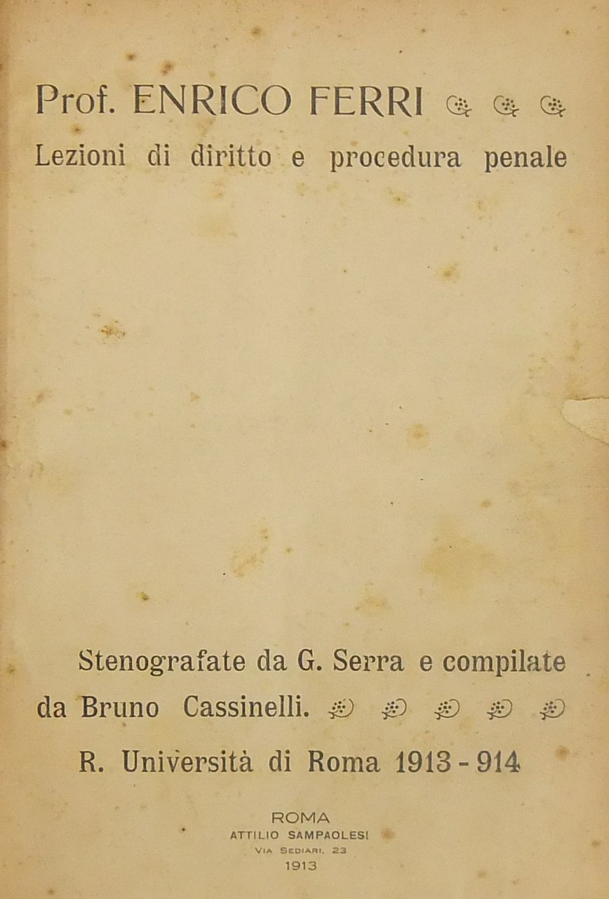 Lezioni di diritto e procedura penale. Stenografate da G. Serra e compilate da Bruno Cassinelli. R. Università di Roma 1913-914 | Libros antiguos y modernos | Ferri Enrico (1856-1929)