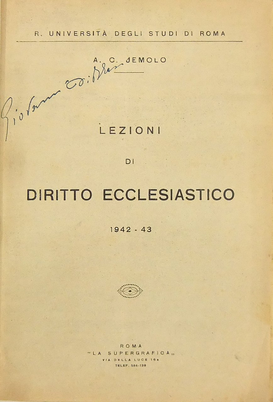Lezioni di diritto ecclesiastico 1942-43 | Libros antiguos y modernos | Jemolo Arturo Carlo (1891-1981)