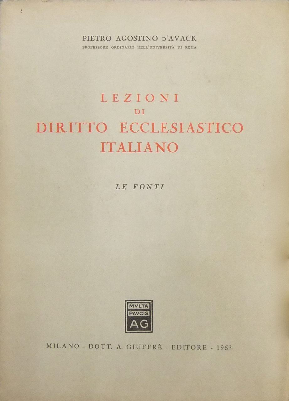 Lezioni di diritto ecclesiastico italiano. Le fonti | Libros antiguos y modernos | D'Avack Pietro Agostino