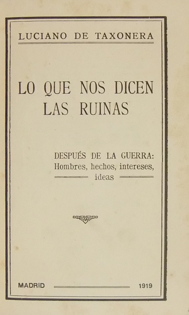 Lo que nos dicen las ruinas. Despues de la guerra hombres hechos intereses ideas | Libros antiguos y modernos | Taxonera Luciano De