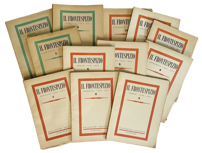 Interessante lotto composto da 12 numeri della rivista "II Frontespizio", fondata a Firenze nel 1929 e cessata nel 1940. Nato come bollettino bibliografico della Libreria Fiorentina, il periodico passò nel giugno del 1930 all'editore Vallecchi. La rivista cercò, sotto la spinta del sacerdote Giuseppe De Luca, di recuperare e promuovere i valori religiosi andati perduti sia nell'arte che nella letteratura.