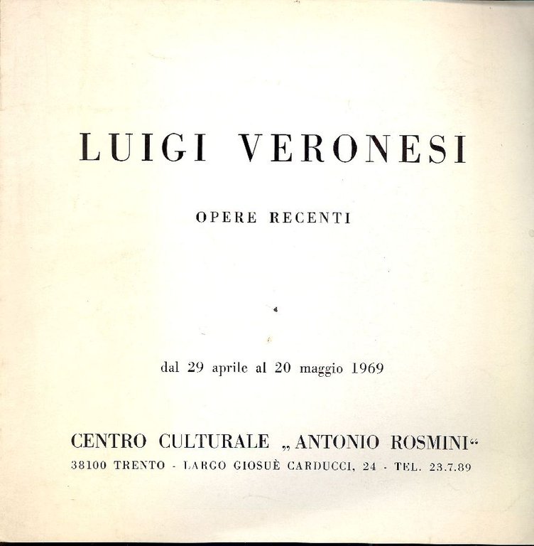 Luigi Veronesi. Opere recenti | Libros antiguos y modernos | VERONESI, Luigi (Milano, 1908 - Milano, 1998),