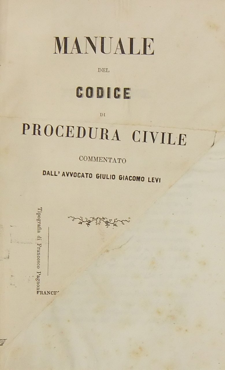 Manuale del codice di procedura civile commentato dall'Avvocato Giulio Giacomo Levi | Libros antiguos y modernos | Levi Giulio Giacomo