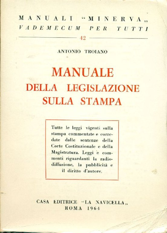 Manuale della legislazione sulla stampa | Libros antiguos y modernos | TROIANO Antonio,