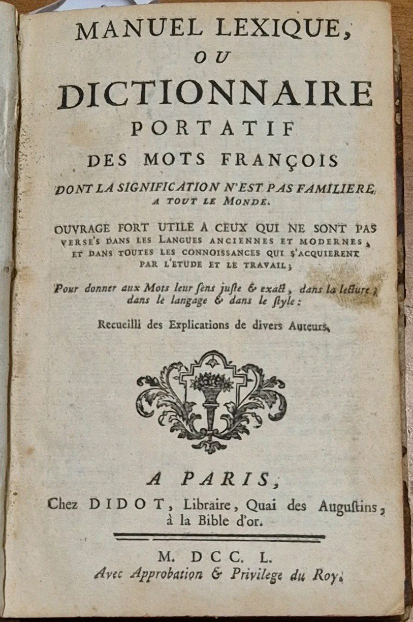 MANUEL LEXIQUE OU DICTIONNAIRE PORTATIF DES MOTS FRANCOIS volume 1 Prevost 1750 | Libros antiguos y modernos |