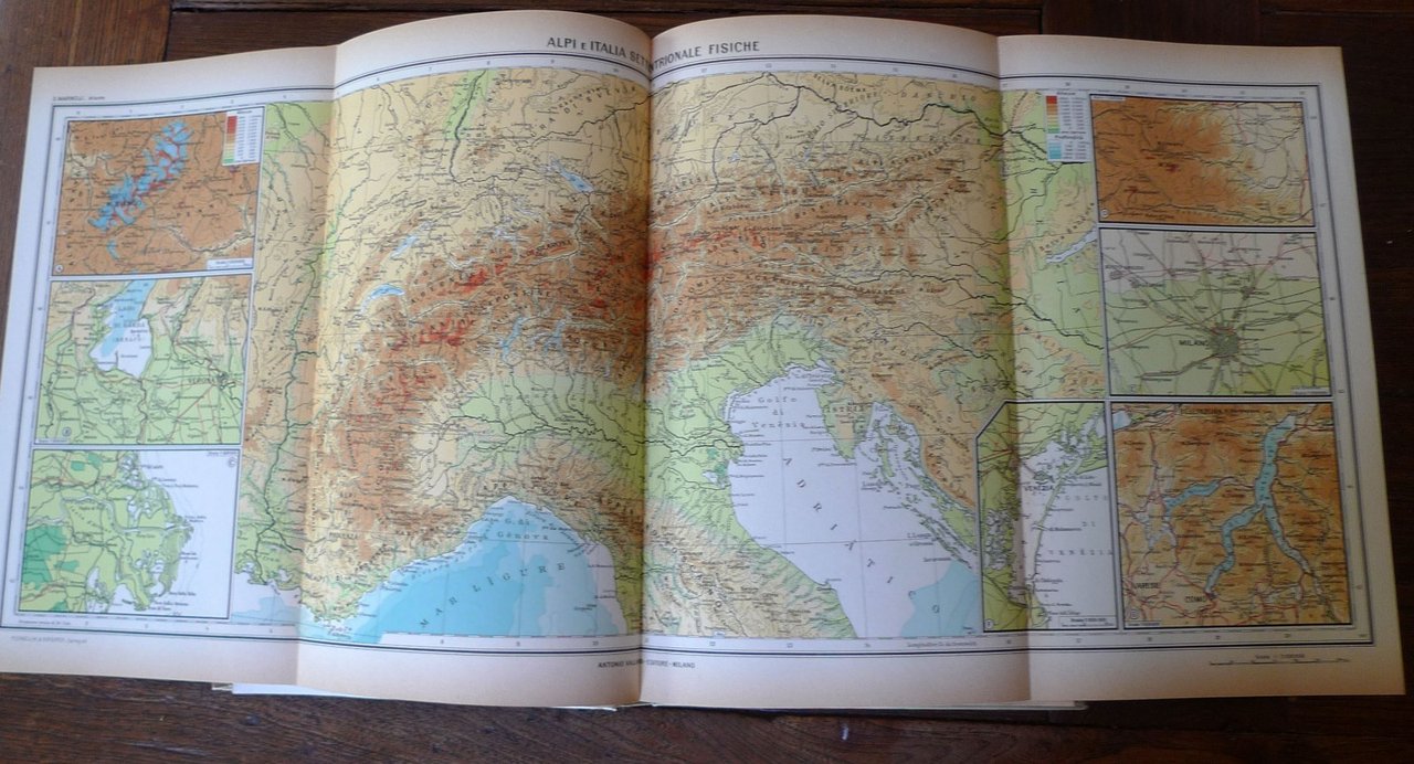Olinto Marinelli,ATLANTE SCOLASTICO DI GEOGRAFIA MODERNA.203 carte e cartine con commento illustrato.Antonio Vallardi Editore, Milano 1958,copertina rigida, rilegatura in tela,31,5x20 cm., pp.48;54 tavv; pp.30,illustrazioni fotografiche in bianco e nero nel testo,tavole a colori, anche su pagine ripiegate,fuori testo,peso: kg.1,3cod.10331CONDIZIONI DEL LIBRO: molto buone,tavole ingiallite